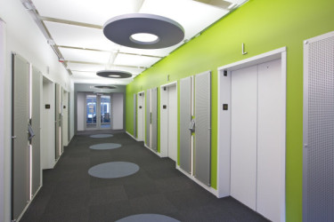 With easy access from Illinois Street on the lower level of the building, the bike storage offers tenants who commute on two wheels access to secure parking for their bicycles.